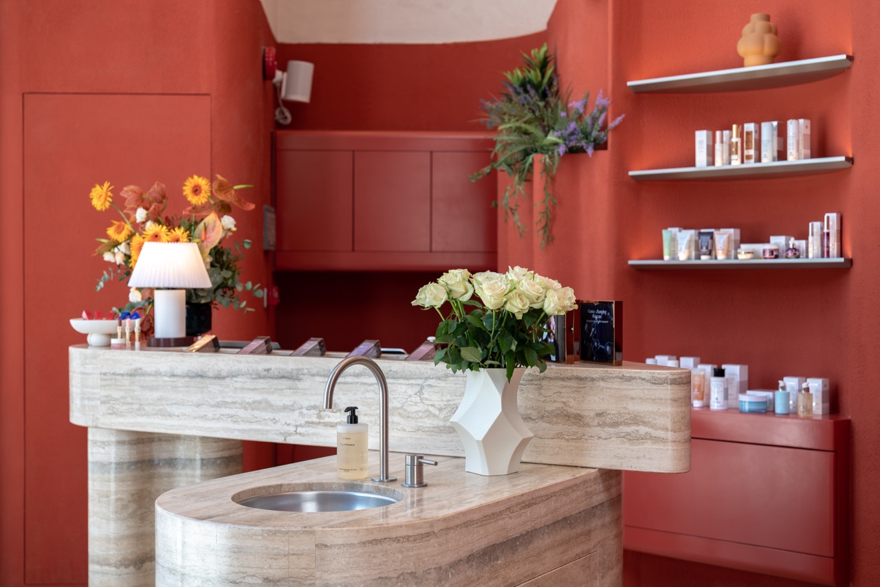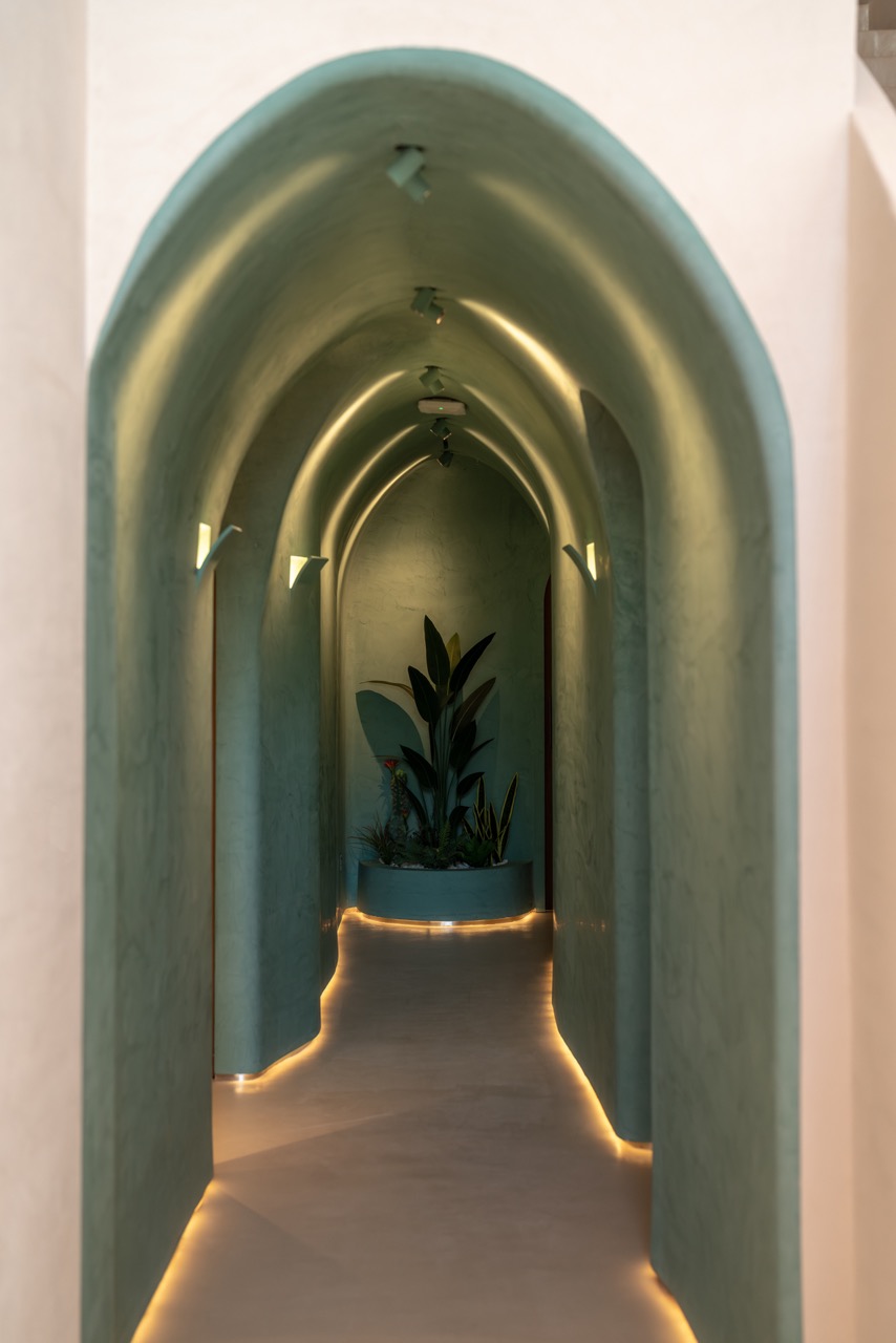 The signature feature — a multifunctional sculptural wall — anchors the experience, blending form and function as display, divider, and architectural statement. An emerald-toned tunnel leads visitors into a luminous core space, balancing drama with serenity.