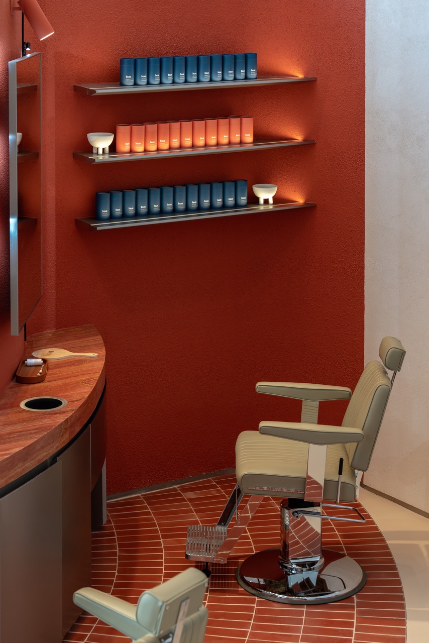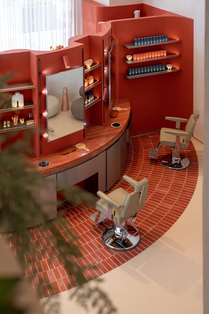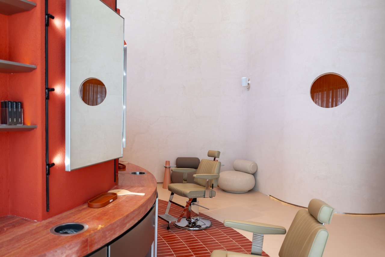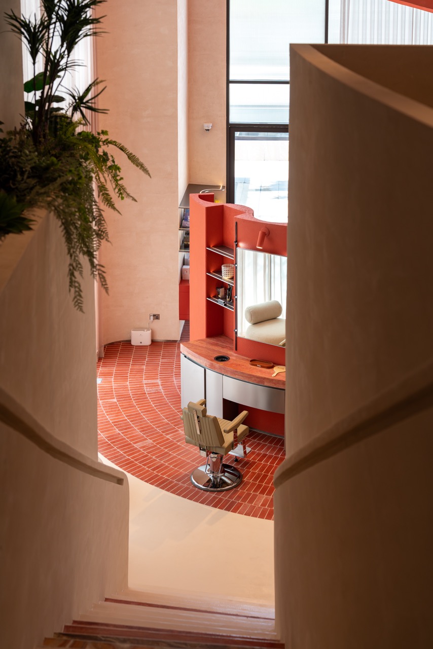 Guided by the concept of “The Wondrous Portal,” the design invites guests on a sensory journey where sculpted forms, soft lighting, and material contrasts evoke calm, curiosity, and renewal. Rather than a traditional salon layout, H2R created an open, fluid environment where retail, grooming, and wellness seamlessly merge.